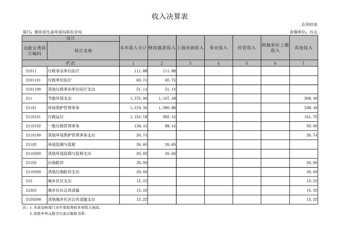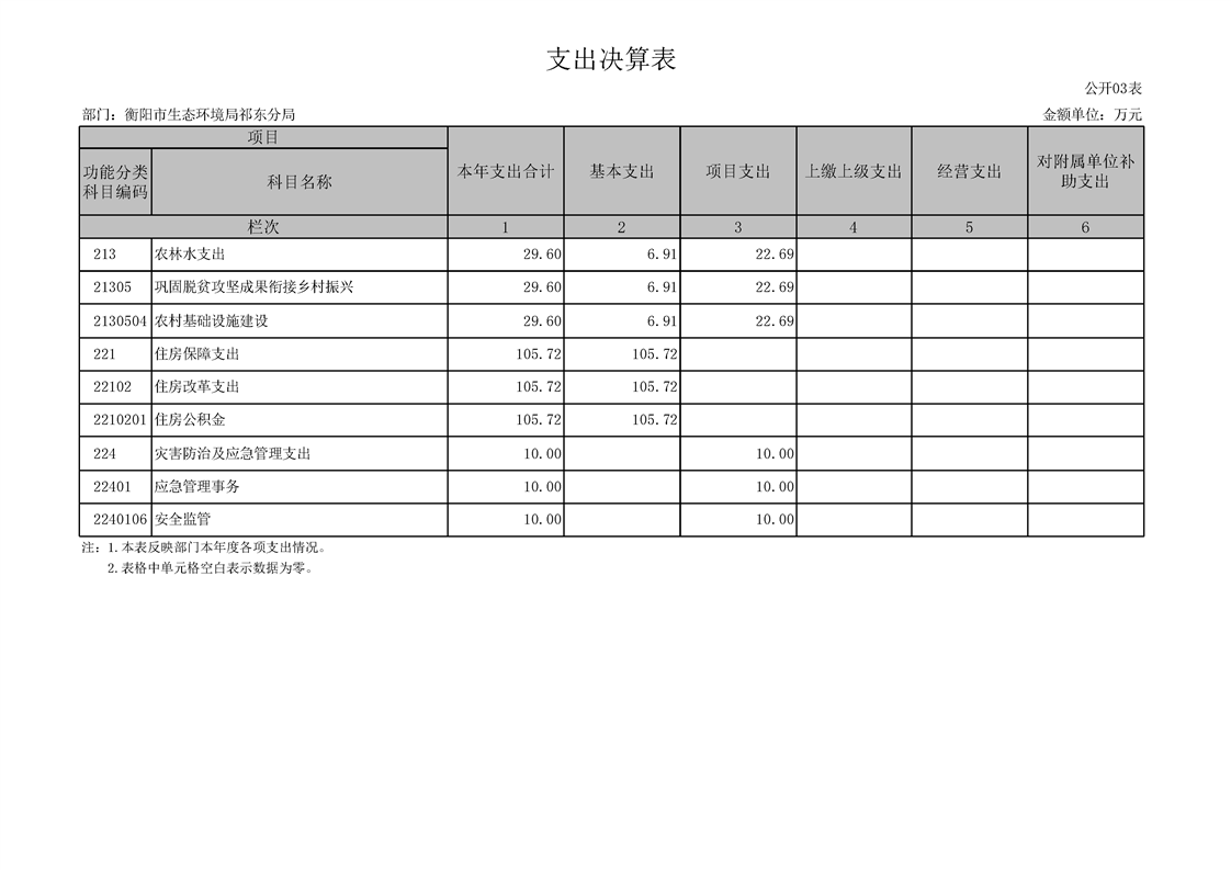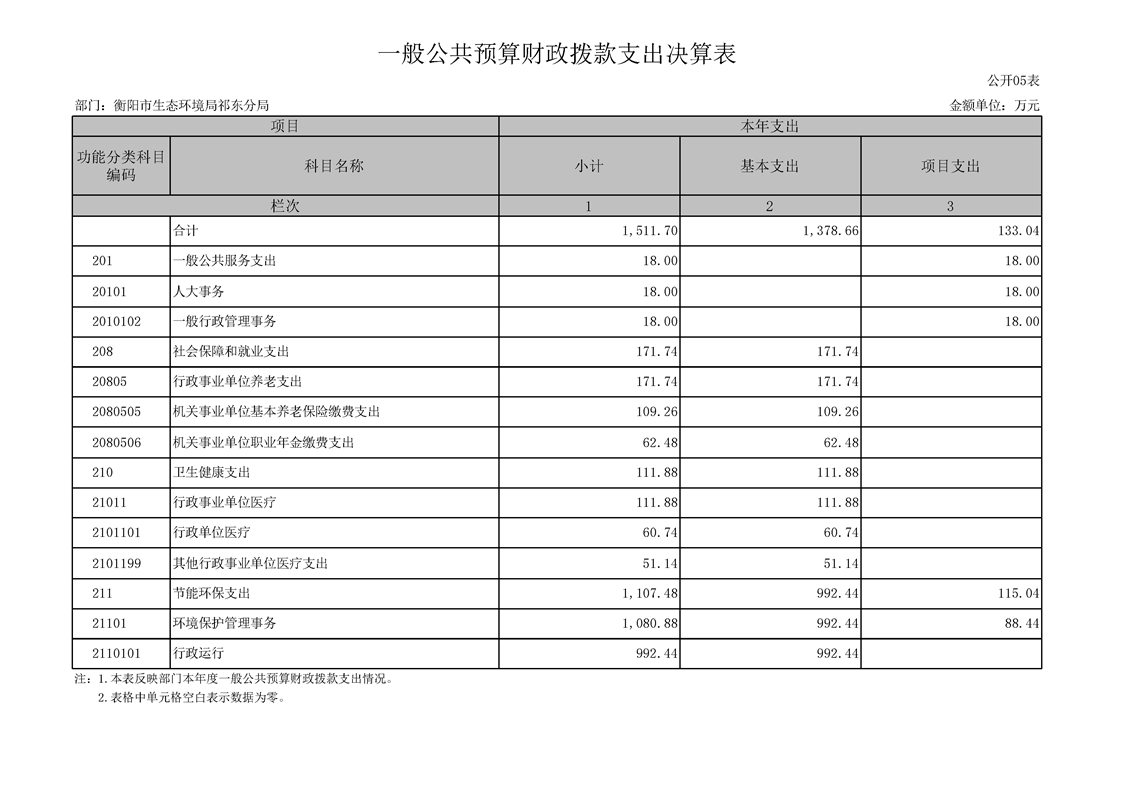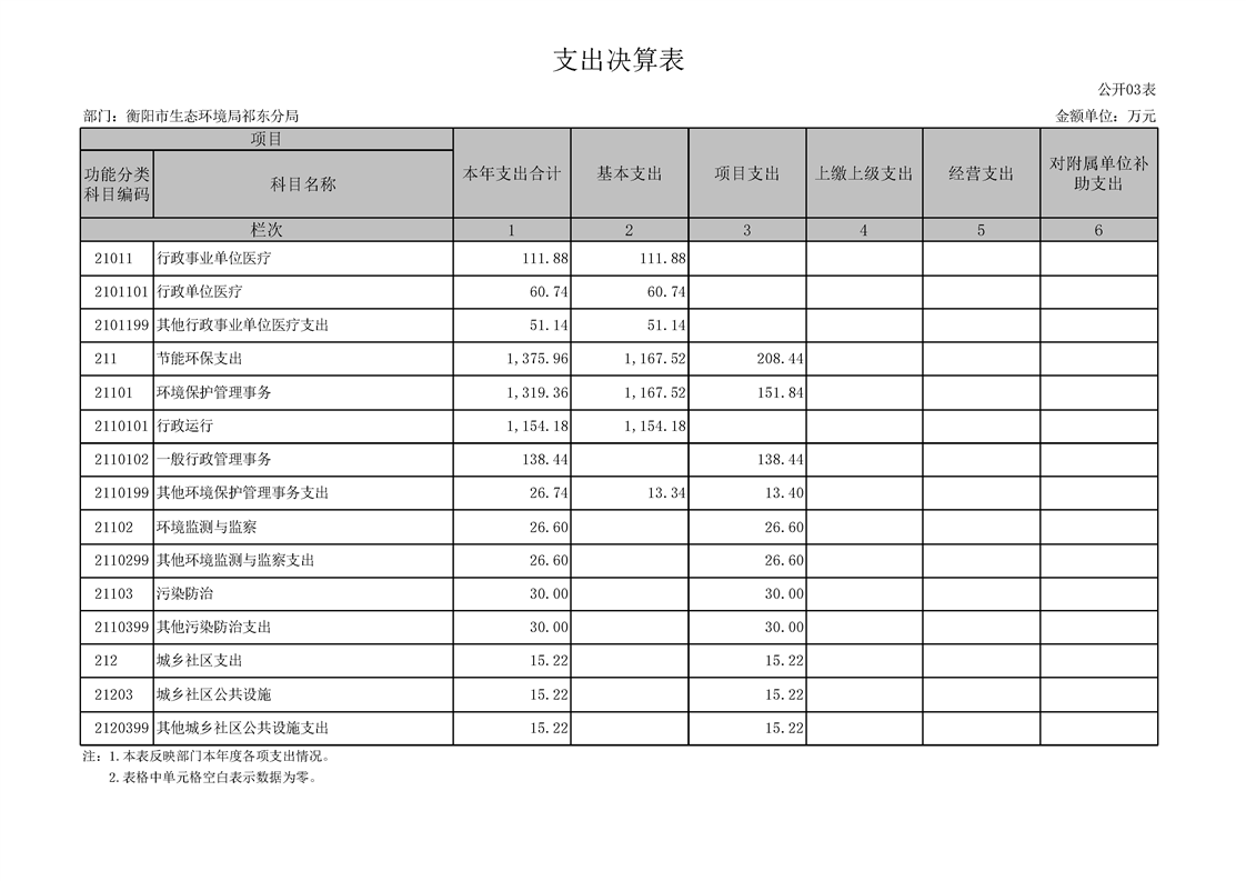 衡陽(yáng)市生態(tài)環(huán)境局祁東分局2024年決算公開(kāi)