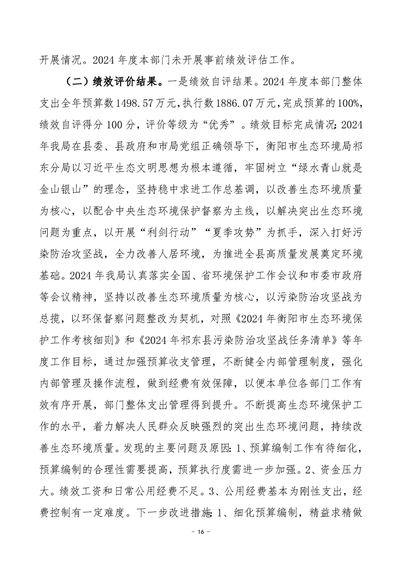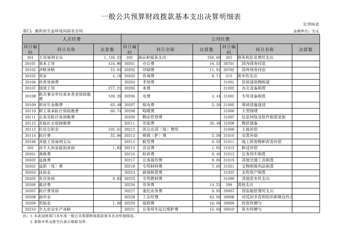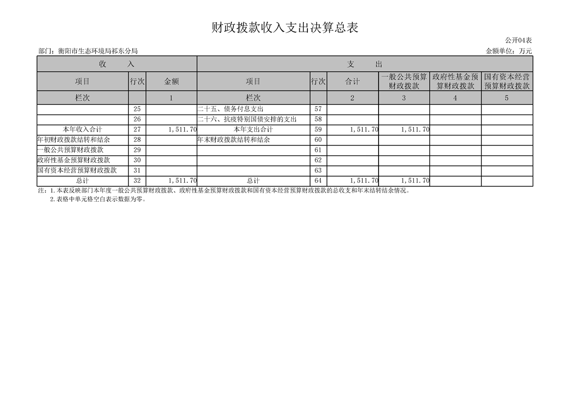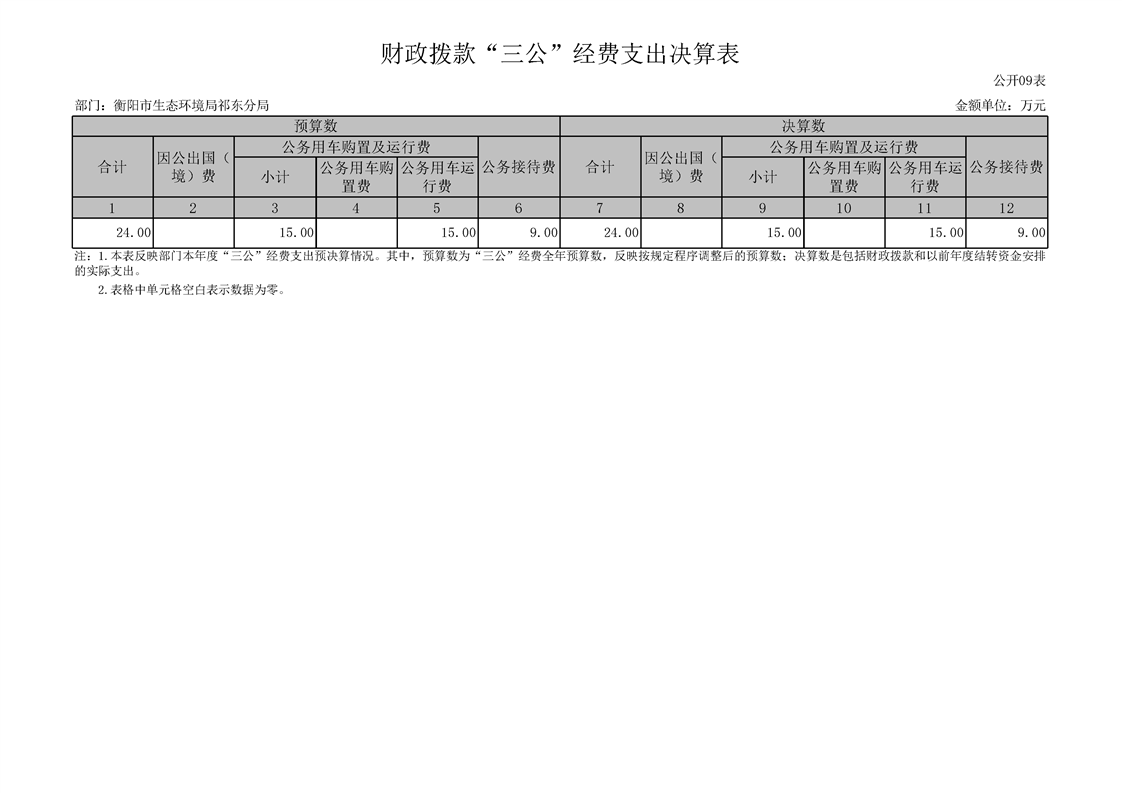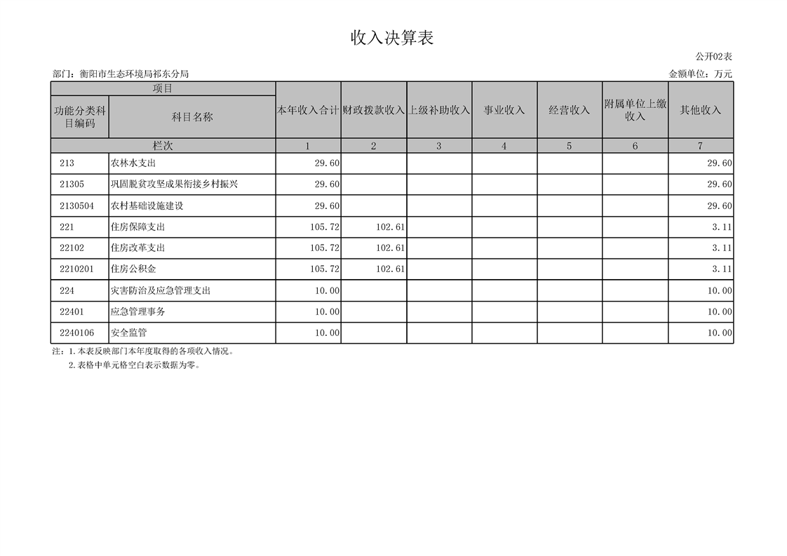 衡陽(yáng)市生態(tài)環(huán)境局祁東分局2024年決算公開(kāi)