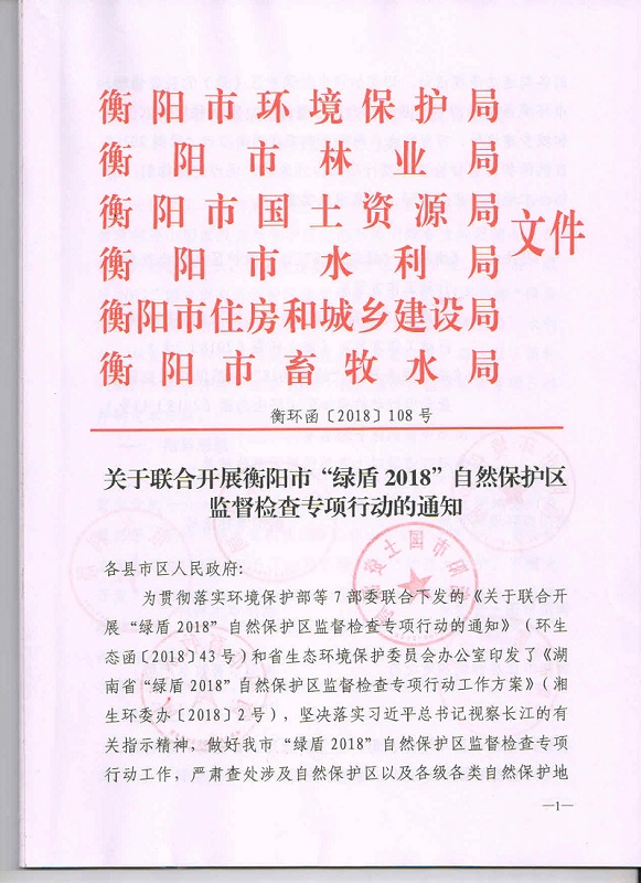 關(guān)于聯(lián)合開展衡陽市“綠盾2018”自然保護區(qū)監(jiān)督檢查專項行動的通知